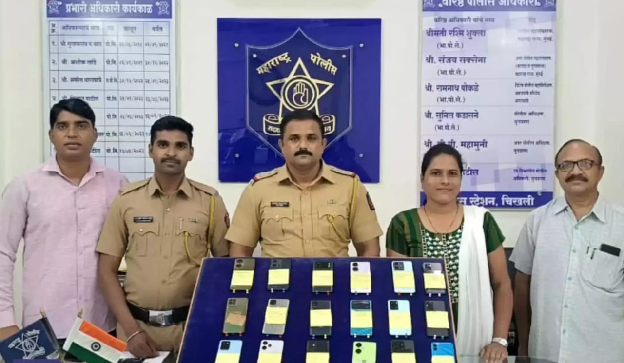 बुलढाणा : चिखली पोलीस स्टेशन हद्दीत नागरिकांचे अनेक मोबाईल मागील दिवसांपासून चोरीला गेल्याच्या तक्रारी पोलीस ठाण्यात करण्यात आल्या आहेत. या प्रकरणी तांत्रिक तपास करून विविध ठिकाणाहून चोरी गेलेले १८ मोबाईल पोलिसांनी हस्तगत केले आहे. गहाळ झालेल्या त्या मोबाईलची किंमत २ लाख रुपये इतकी असल्याचे सांगीतले जात आहे. दि. १६ जुलै रोजी मंगळवार रोजी तक्रारदारांना पोलीस ठाण्यात बोलावून त्यांना मोबाईल परत करण्यात आले आहे. तक्रारीवरून गहाळ झालेल्या मोबाईलचा आढावा घेत पोलीसांनी शोध मोहीम राबवली होती. मोहिमेमध्ये गहाळ मोबाईलचे लोकेशन ट्रेस करण्यात आले. चिखली ठाण्याचे पोलीस निरीक्षक संग्राम पाटील यांच्या मार्गदर्शनाखाली पोलीस अंमलदार विजय किटे, सुनील राजपूत, चंद्रशेखर मुरडकर, महिला पोलीस अंमलदार रुपाली उगले यांनी ही कारवाई केली. चिखली पोलिसांच्या या कामगिरीने त्यांचे सर्वत्र कौतुक होत आहे.