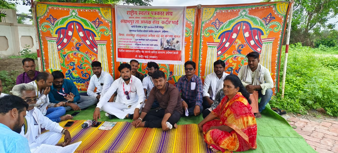 बुलढाणा : संग्रामपूर तालुक्यातील अवैध धंदे बंद करण्यासाठी राष्ट्रीय स्वतंत्र पत्रकार संघ नवी दिल्ली तालुकाध्यक्ष शेख कदीर शेख दस्तगीर यांनी तामगाव पोलिस स्टेशन चे ठाणेदार राजेंद्र पवार यांना २० जुन रोजी निवेदन दिले होते. तसेच पत्रकार संघाला युवा स्वाभिमान पार्टी कडून जाहीर पाठिंबा दिला असून यांनी सुद्धा तालुक्यातील अवैध धंदे बंद करण्यासाठी निवेदन दिले आहे. परंतु आज पर्यंत तालुक्यातील अवैध धंद्यावर कुठल्याही प्रकारची कारवाई न झाल्याने शेख कदिर व रवी सोळंके यांनी आज दि.४ जुलै रोजी तामगाव पोलीस स्टेशन समोर आमरण उपोषणास सुरूवात केली आहे. त्यामुळे राष्ट्रीय स्वतंत्र पत्रकार संघाचे महाराष्ट्र प्रदेश अध्यक्ष भिमराव पाटील व महाराष्ट्र प्रदेश कार्याध्यक्ष लियाकत खान यांनी तालुकाध्यक्ष शेख कदीर यांना भेट दिली. तर या उपोषणाला वंचित बहुजन आघाडीचे युवा तालुका अध्यक्ष आशिष धुंदळे यानी युवा आघाडी कडुन जाहिर पाठींबा व आपले मत व्यक्त केले. ते बोलत होते की संग्रामपूर तालुक्यातील वरली मटका, फुल फकडी, देशी दारू विक्री अशा अवैध धंद्यामुळे तरुण पिढी व्यसनाधीन होत आहे याच धंद्यांमुळे अनेकांचे संसार उध्वस्त झाले असून तालुक्यातील अवैध धंदे तात्काळ बंद करा अन्यथा वंचित बहुजन युवा आघाडी करून यापेक्षाही तीव्र स्वरूपाचे आंदोलन करण्यात येईल असा इशारा सुद्धा देण्यात आला. त्यावेळी यशवंत मारुती वानखडे, अक्षय उत्तम वानखडे, दिशांत अशोक अजने, रफिक भाई पत्रकार, ईसूब भाई पत्रकार, रामेश्वर गायकी पत्रकार, ज्ञानेश्वर दांदळे पत्रकार, श्यामसुंदर पत्रकार, मंगेश टाकसाळ पत्रकार, विवेक राऊत पत्रकार, निलेश तायडे, डाबेराव फेटेवाले, स्वतंत्र महाराष्ट्र कामगार संघटनेचे जिल्हाध्यक्ष देवराव सोळंके यांच्यासह आदींची उपस्थिती होती.