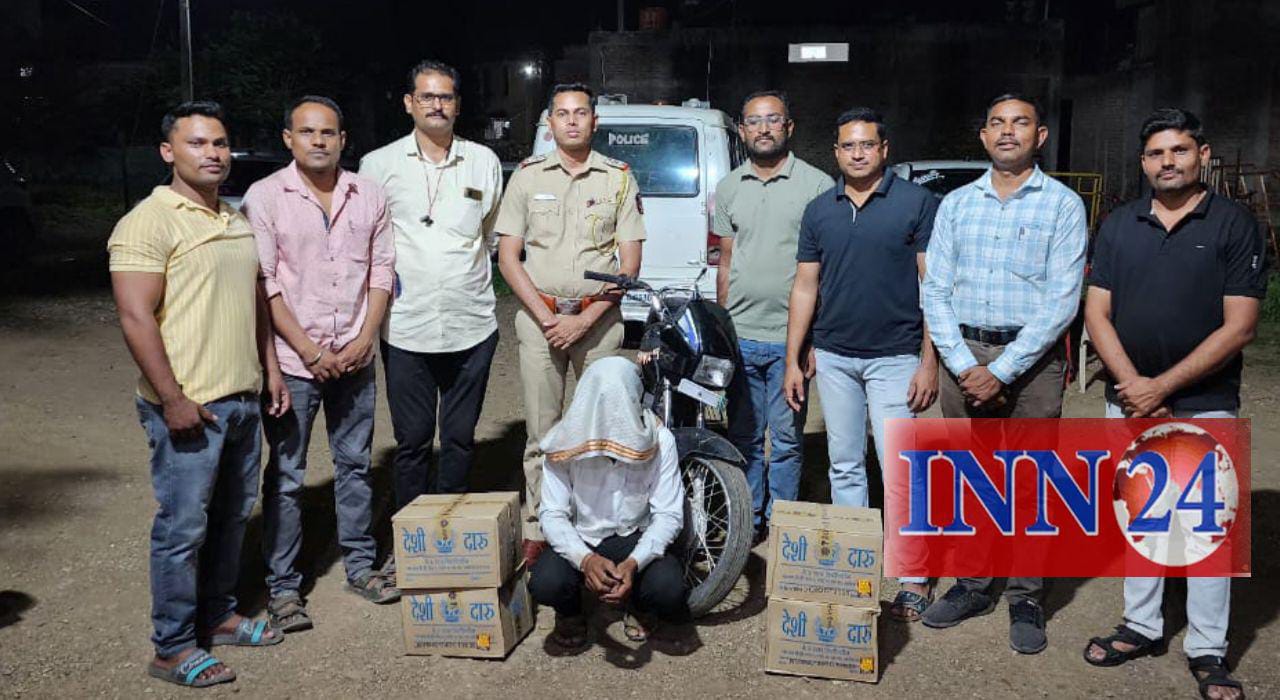 बुलढाणा: अवैध धंद्यांविरोधात सोनाळा पोलिसांचा हल्लाबोल सुरूच आहे. नुकतेच देशी कट्ट्यांच्या कारवाईनंतर आता पोलिसांनी देशी दारू वाहतूक करणाऱ्या एका इसमावर कारवाई करत त्यास अटक केली असून, त्याच्याकडून देशी दारू व मोटरसायकल असा एकूण ५६ हजारांचा मुद्देमाल जप्त करण्यात आला आहे. प्राप्त माहितीनुसार, गु.र.क्र. २७९/२०२५, कलम ६५(अ) महाराष्ट्र दारूबंदी कायदा अंतर्गत ही कारवाई करण्यात आली. फिर्यादी म्हणून पोलीस शिपाई राहुल रमेश पवार यांनी तक्रार दाखल केली आहे.सदर आरोपी विजय पुंडलिक गोमासे वय ५२ वर्षे, रा. निमखेड, पोस्ट लाढणापुर, ता. संग्रामपूर हा लाढणापुर फाटा, ता. संग्रामपूर येथे देशी दारूची अवैध वाहतूक करत असताना पोलिसांच्या ताब्यात आला. कारवाई दरम्यान पोलिसांनी आरोपीकडून ‘बिग बॉस ५०००’ या देशी दारूच्या प्रत्येकी ९० मि.ली.च्या ४०० शिश्या प्रत्येकी किंमत ४० असा १६ हजार किंमतीचा माल तसेच दारू वाहतुकीसाठी वापरलेली विना नंबरची स्प्लेंडर प्लस मोटरसायकल किंमत ४० हजार ताब्यात घेतली.