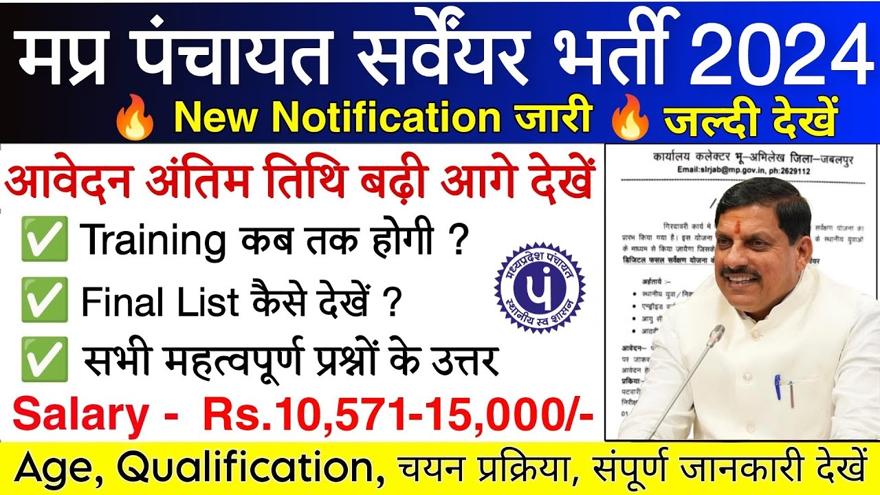 MP Surveyor Vacancy 2024 : अब गाव मे भी मिलेंगी सरकारी नौकरी जी हा ! अब 5वी और 8वी पास वालो के लिए निकली भूमि सर्वेक्षक भर्ती जल्दि करे आवेदन MP Surveyor Vacancy 2024: गांव के गांव में MP भूमि सर्वेक्षक भर्ती..मध्यप्रदेश के युवाओं की आप ग्राम पंचायत, एवम तहसील में मिलेंग सरकारी नौकरी। मध्य प्रदेश सरकार के द्वारा प्रत्येक ग्राम के 8 वी पास युवाओं को MP सर्वेयर भर्ती 2024 के पद पर मिल रही सरकारी नौकरी। सरकार के इस कार्य को करने के लिए हर एक गांव में मिलेंगे सरकारी नौकरी और काम केवल अपने गांव के किसानों से मिलना उनकी फसल की गिरद्वारी करके का है कार्य करना।
