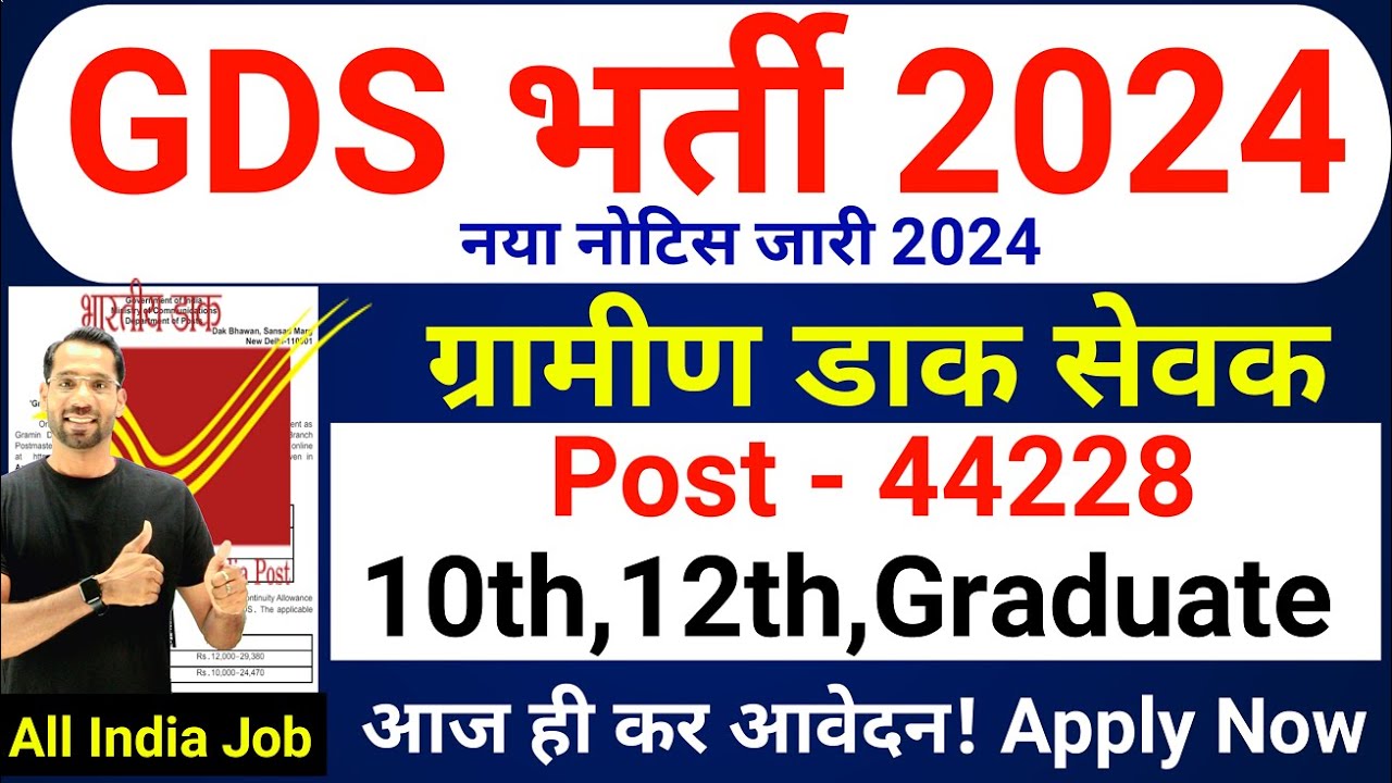 भारतीय डाक विभाग द्वारा ग्रामीण डाक सेवक भर्ती का नोटिफिकेशन जारी कर दिया है इसके लिए सभी महिला और पुरुष अभ्यर्थी आवेदन कर सकते हैं इंडिया पोस्ट द्वारा ग्रामीण डाक सेवक के 44228 रिक्त पदों को भरा जाएगा इंडिया पोस्ट ऑफिस में यह भर्ती स्टेट वाइज निकाली गई है इसमें पदों की संख्या भी स्टेट वाइज अलग-अलग रखी गई है राजस्थान में 2718 पद, बिहार में 2558 पद, उत्तर प्रदेश में 4588 पद, मध्य प्रदेश में 4011 पद, छत्तीसगढ़ में 1338 पद आदि।